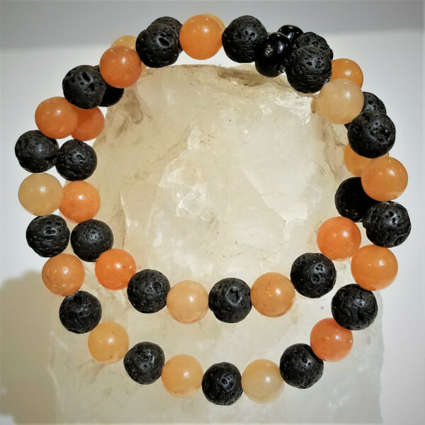 Matte red-orangish aventurine gemstones paired with basalt to diffuse essential oils.