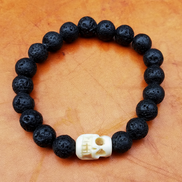 Hand carved skull from the bone of a Water Buffalo paired with basalt to diffuse essential oils.